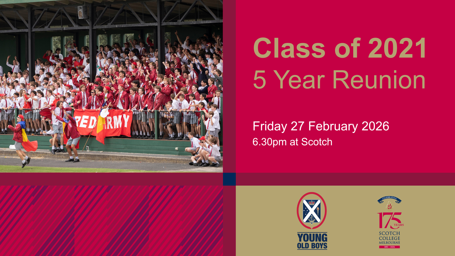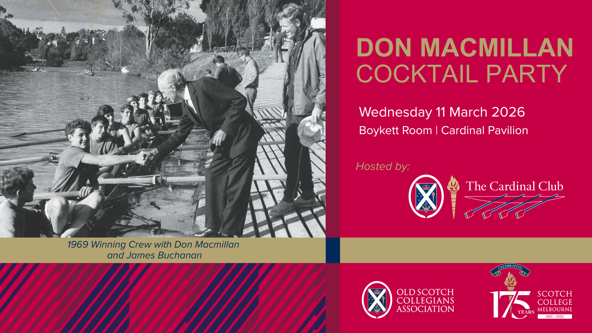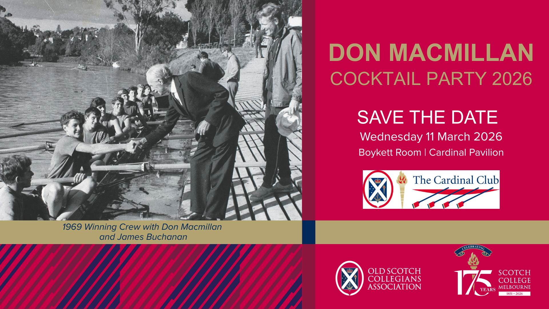 Wednesday 11 March. We are looking forward to welcoming the decade rowing crews: 1956, 1966, 1976, 1986, 1996, 2006 and 2016. Cardinal Pavilion, Scotch College.