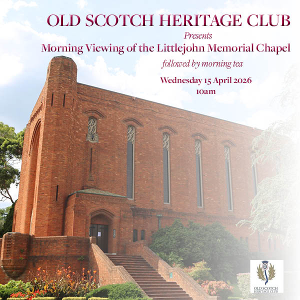 From 10am Scotch’s School Organist David Brown will play the Chapel Organ during the arrival of participants. Following the recital, Scotch Archivist Paul Mishura will present a talk on the history of the Chapel and its construction. The Chapel, named